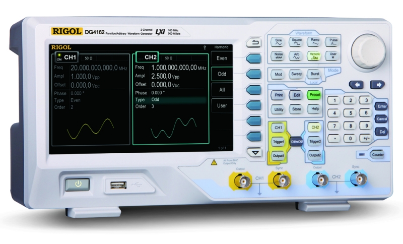 - Интерфейсы Rigol DG4162: USB device, USB host, LAN (поддержка LXI класс С)