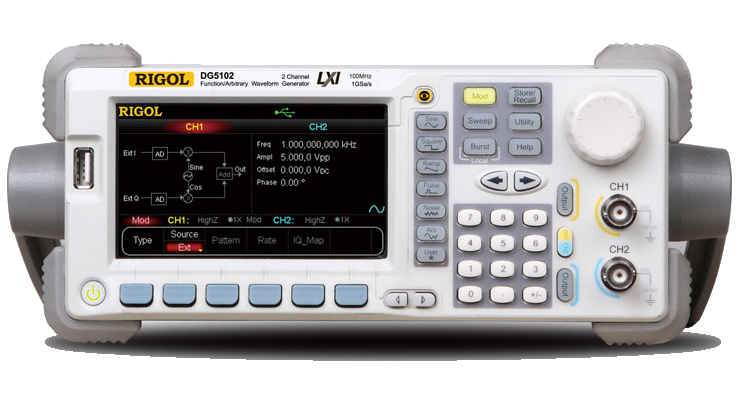 В генераторе сигналов Rigol DG5102 использована технология прямого цифрового синтеза (DDS), что позволяет обеспечить высокую стабильность и точное восстановление сигнала с низким уровнем искажений. Наряду со стандартными и произвольными формами сигналов, генератор сигналов Rigol DG5102 способен формировать векторную I/Q модуляцию и сигналы с псевдослучайной перестройкой рабочей частоты. Помимо того, Rigol DG5102 поддерживает модуль смешанных сигналов (16 цифровых и 2 аналоговых канала). Благодаря наличию интерфейса LAN (LXI Class C) можно дистанционно управлять генератором сигналов Rigol DG5102 в измерительных лабораториях любой конфигурации.