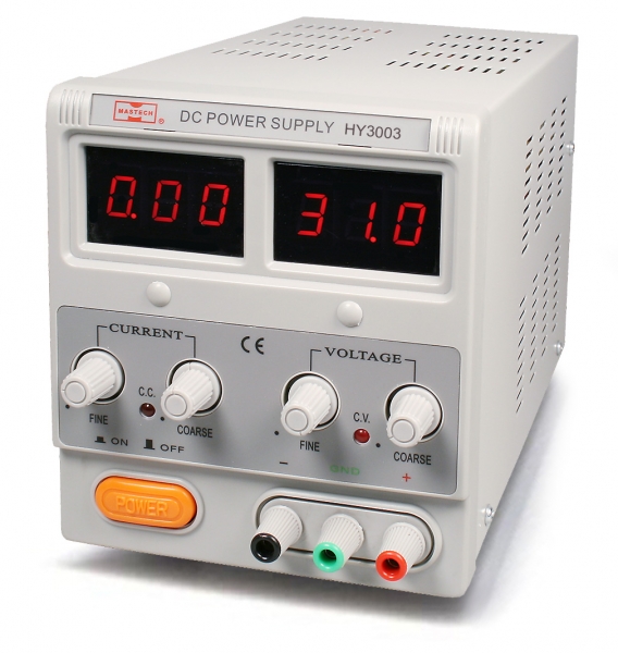 Mastech HY3003 – источник питания, позволяющий получать регулируемое, точное и стабильное постоянное напряжение или постоянный ток. Две пары регуляторов грубой и точной настройки облегчают установку напряжения и тока, а цифровые индикаторы тока и напряжения упрощают считывание параметров выхода.