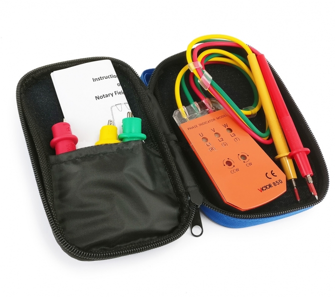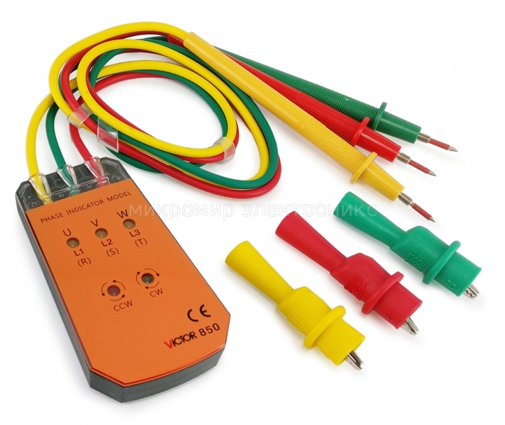 Индикатор чередования фаз Victor VC850 предназначен для определения правильности чередования фаз и индикации напряжения на фазных проводах в трехфазных электрических цепях переменного тока.