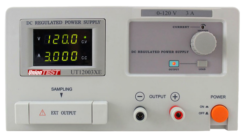 - Индикация UnionTEST UT12003XE: 4-разрядные LED-дисплеи на ток и напряжение
