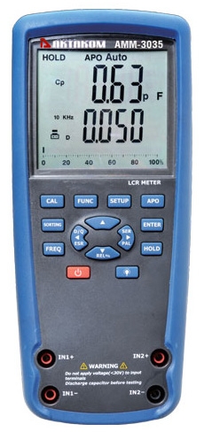 Профессиональный водонепроницаемый измеритель RLC АММ-3035 — современный прибор с инновационной технологией автоматического измерения индуктивности, ёмкости, сопротивления, добротности, тангенса угла потерь или фазового угла и режимом определения полярности. Тестовая частота RLC-метра составляет до 100 кГц.