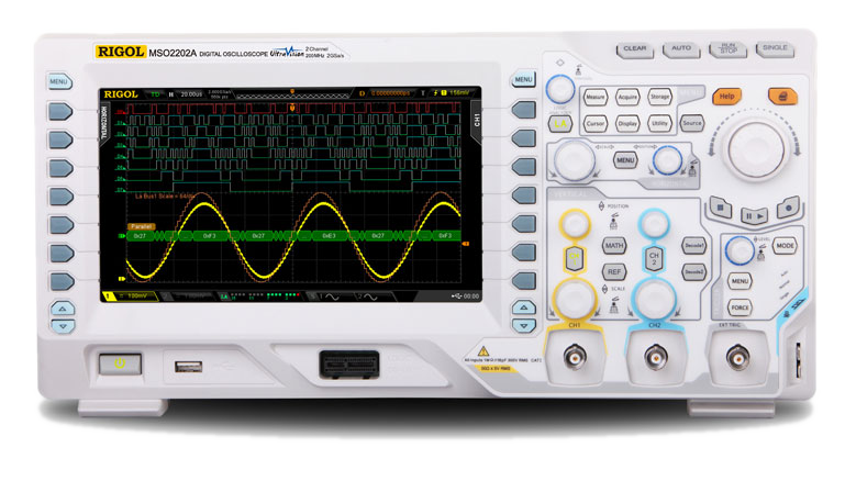 Цифровой осциллограф Rigol MSO2202A является эффективным средством исследования сигналов, обладая низким уровнем шума, расширенными возможностями по запуску, а также возможностью синхронизации и декодирования сигналов шин (I²C, RS-232, SPI и др.).