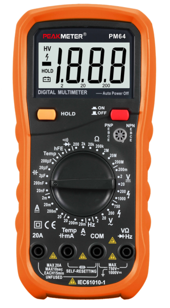 Погрешность PEAKMETER PM64 определяется как ±(% от показания + число значений единицы младшего разряда).