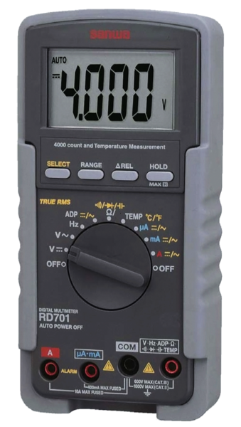 - Разрядность шкалы мультиметра Sanwa RD701: 4000 отсчетов (частота 9999, емкость 5000)
