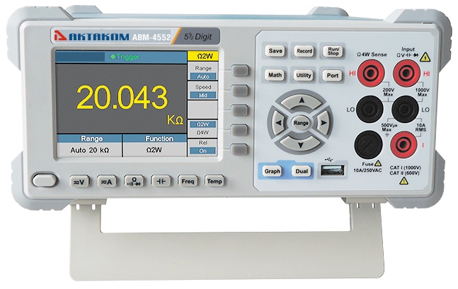 Мультиметр Актаком АВМ-4552 - это высокоточный измеритель с разрешением дисплея 5½ разрядов, отличающийся высокой производительностью, высокой точностью измерений и широкими функциональными возможностями, включая измерение иcтинных среднеквадратических значений (TrueRMS) и возможность дистанционного управления при помощи SCPI команд. Цифровой мультиметр Актаком АВМ-4552 имеет функции автоматического измерения и анализа результатов измерений. Измерительные возможности мультиметра Актаком АВМ-4552 можно расширить путём подключения к нему внешних датчиков. Прецизионный мультиметр Актаком АВМ-4552 построен с использованием новейших технологий и является мощным и эффективным средством измерений для применения в различных отраслях промышленности, научных исследованиях, образовании, сервисных службах.